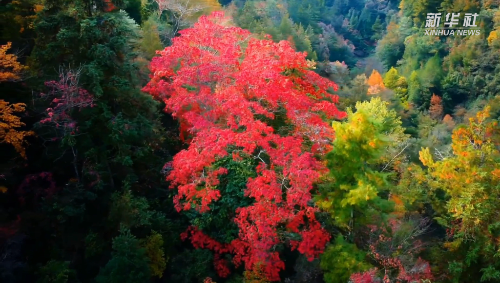 各类树木的叶片悄然换上“彩妆”,或嫩黄、或深红,连片的彩林绵延起伏,勾勒出冬日里灵动的生态画卷。