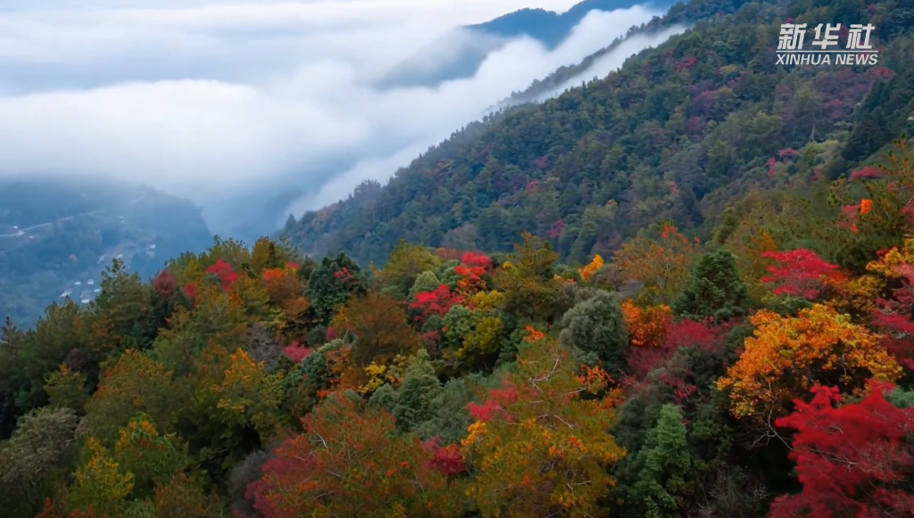 初冬时节,位于重庆市万州区的王二包自然保护区层林尽染,美不胜收。