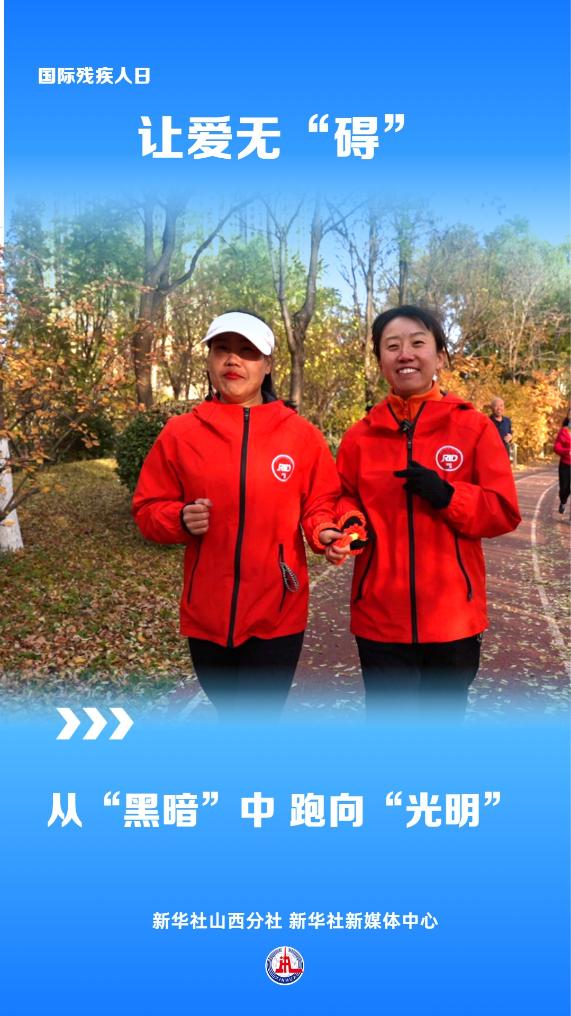 新华社太原12月1日电(记者徐伟)初冬时节,一场寒潮如期而至,山西太原的早间气温骤降。清透的蓝天下,一片片干黄的树叶散落在盲道上,杨霞踩在上面沙沙作响。11月30日早晨。在志愿者的引领下,杨霞迫不及待地走向公交站,赶在8点前,她要到达和平公园,和其他盲友一起跑步。