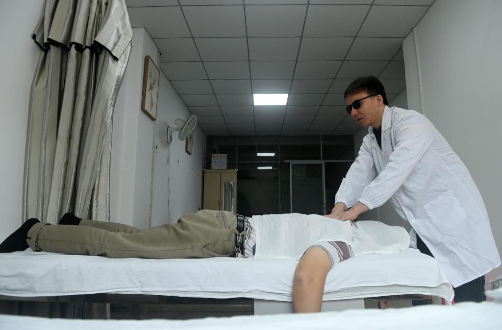 一番苦苦挣扎后,蓝宁选择坚强面对坎坷的人生。“我只是残障,并不是残废,想要自立,必先自强。”后来,在残联部门的关怀下,他参加盲人按摩班培训学习,成为一名盲人保健按摩师。