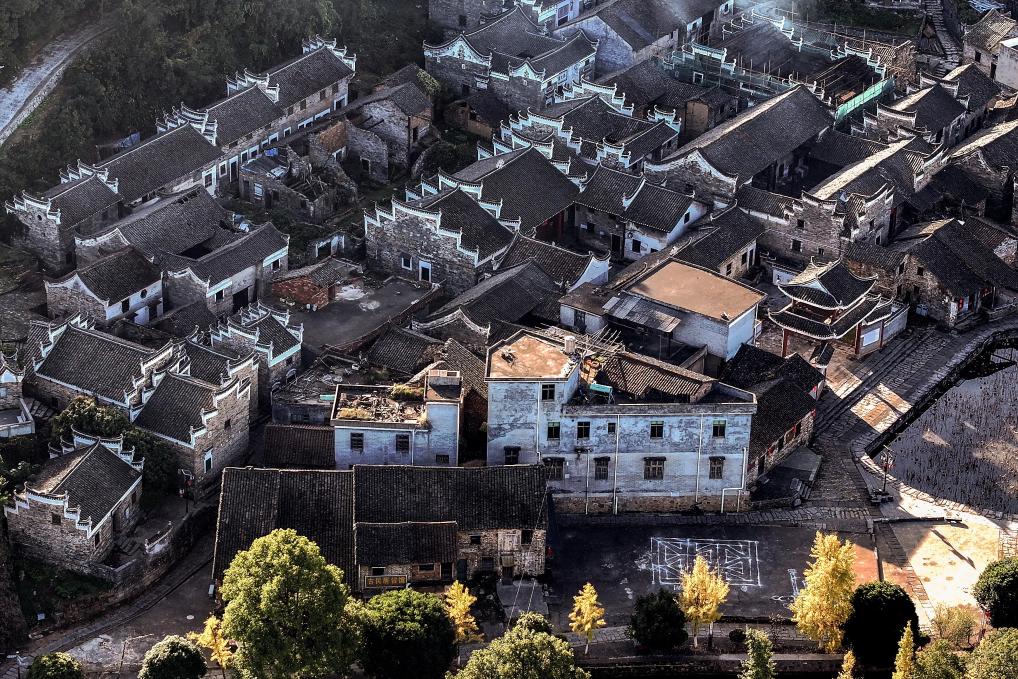 11月24日,人们在郴州汝城县金山村一处古祠堂内(无人机照片)。