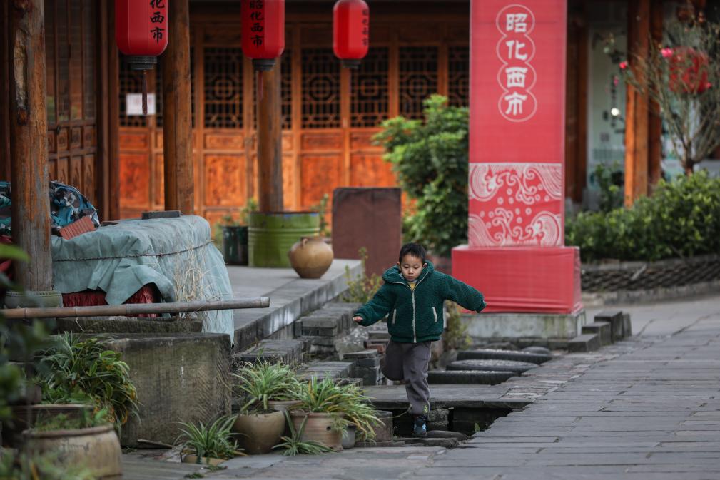 游客在昭化古城内拍照留影(2025年12月13日摄)。