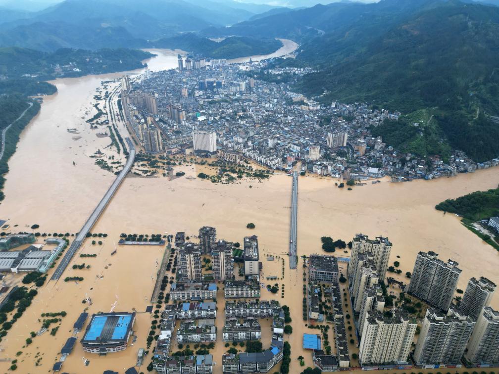 ↑6月24日拍摄的贵州榕江县城(无人机照片)。