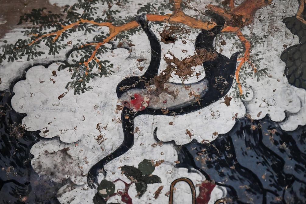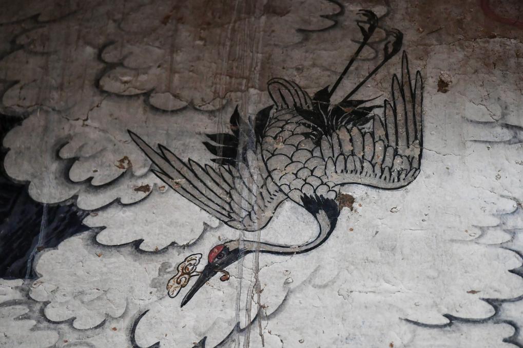 这是12月3日在山西省高平市仙翁庙拍摄的壁画中的鹤。