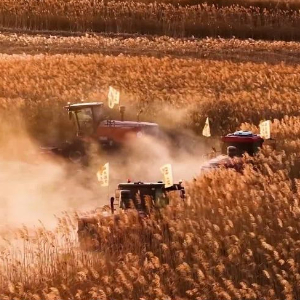 每年冬季,东北大地千里冰封万里雪飘。就在这样一个寒冷的冬季里,辽宁盘锦却迎来了又一个收获季——芦苇收割季。在盘锦辽河口国家级自然保护区内一望无际的湿地上,机器轰鸣,芦花飞舞,一台台收割机穿梭在苇海中,收割、打捆、装车、运输一派繁忙的景象。这些芦苇收割后将用于制造板材、造纸、制作菌棒和加工成工艺品等。