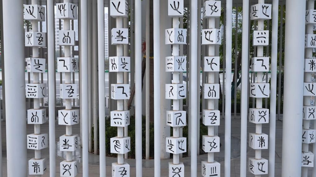 在开州路与绿城路交叉口东南角的造字园,整个公园以文字为主题,通过铺装、小品展现“诗情画意”意境。