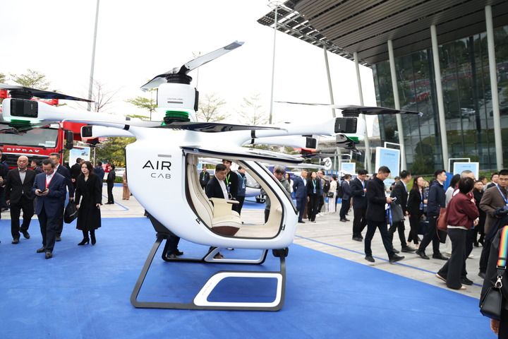 12月25日,2025粤港澳大湾区低空经济高质量发展大会在广州举行。图为大会上展示的多款低空经济产品。