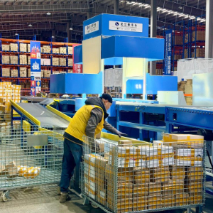 在天府盛俄品龙江壹号仓,工作人员在分拣快递。新华社记者刘赫垚 摄