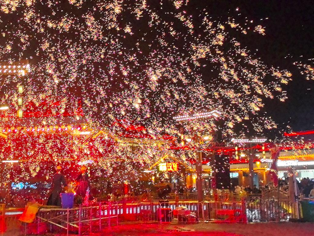 在湖南省怀化市鹤城区榆树湾·青春广场,一场“非遗+祈福”的盛典将节日气氛推向高潮。元旦当天,傩面舞者随着鼓点腾跃,神秘古朴;传承人赤脚踏上36把钢刀搭成的“刀山”,引来阵阵惊叹。夜幕降临,打铁花表演现场,传承人将铁水抛向空中,再用木板奋力击打,千点万点金花四溅,打造出“火树银花不夜天”的绝美景象。