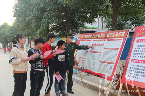 未成年学生群体本身容易产生逆反心理,且因自身的法律知识较薄弱,容易冲动做出格的事,考虑到学生群体这一特殊情况,为保证学生们的安全健康成长,该所积极组织官兵深入辖区企沙中学,围绕“学习贯彻党的十九大精神,维护宪法权威”这一主题,通过向学生们发放以《中华人民共和国宪法》等为内容印制的宣传资料和宣传刊板的展示,同时向现场学生们提供法律知识咨询等方式来开展宪法宣传教育。活动过程中,官兵耐心为学生们解答宪法知识问题,并结合相关实例教育学生们要时刻以法为界,校园里如此,校外亦是如此。现场学生们纷纷表示:今后一定要做个遵纪守法的好学生。