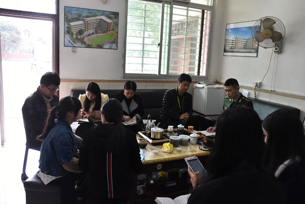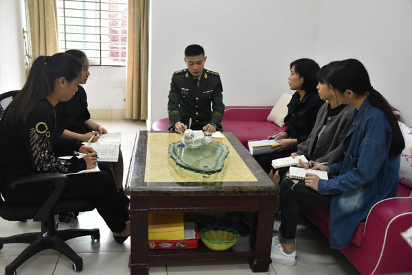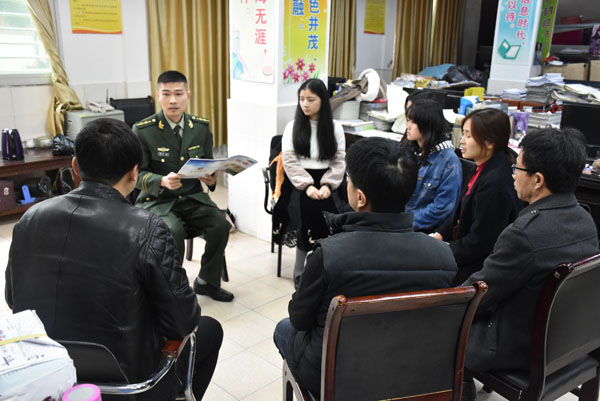边防官兵正在与教师座谈