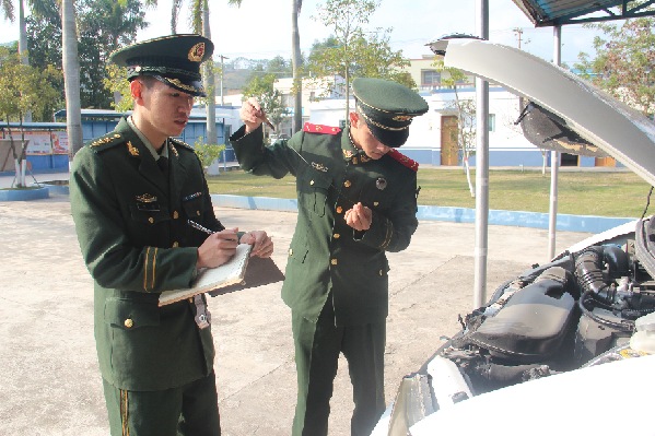 近日,广西边防总队闸口边防派出所官兵对所属车辆开展一次安全大检查。