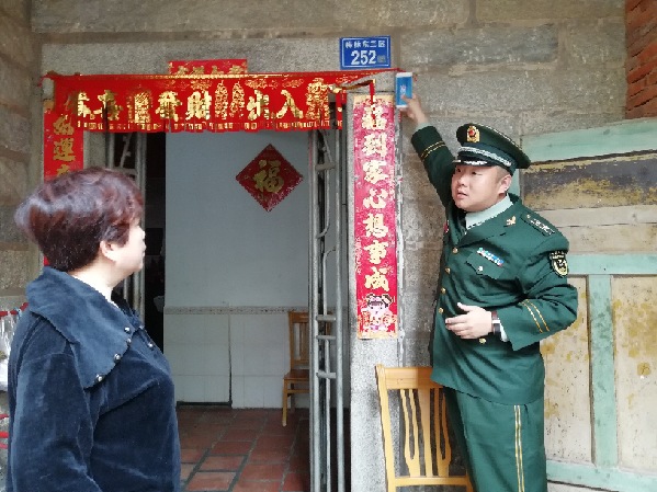 在“小偷事件”过去没多久,郭警官发现港边村西区的沿街店铺前些日子刚装好门牌,现在全没了!于是郭警官遍逐家逐户上门询问。“这个牌子太大,有没有小的?”“这个牌子太小,有没有大的?”“这个门牌号带4,我要带8的!”……原来,虽然郭警官每天都在耐心跟群众做着门牌功能解说,但还是有群众不能理解,这些令人啼笑皆非的理由顿时搞得郭警官“一个头两个大”,要怎样才能让群众能够理解并接受“二维码门牌”呢?经过一段时间的工作,郭警官突然想起来他多年没打的快板,一天,他突然灵光一闪,就编了一套“小门牌大智慧”的快板词:“竹板声声震天响,边防民警心向党,十九大精神做指引,科技惠民国力强。二维码,上门牌,手机定位扫起来,一标三实做到位,一劳永逸贺新岁!”“二维码门楼牌”安装到哪,他就把这个快板唱到哪,还把具有闽南特色的闽南四句融入到快板解说中,让解说更“接地气”,群众们很快接受了这种方式,纷纷加入到配合安装二维码门牌工作的行列中,原先被村民们私自拆下来的门牌也都安了回去。