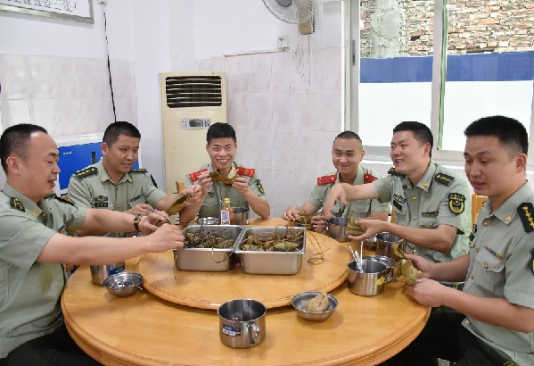 为营造端午节日氛围、丰富官兵的文化生活,在传统佳节端午节来临之际,6月15日,福建泉州边防支队伍堡边防派出所组织官兵开展“端午粽飘香 警营情谊浓”活动。