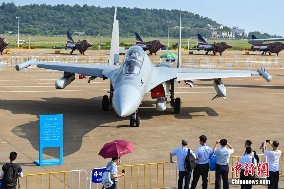 9月28日,广东省珠海市,歼-16D飞机亮相第十三届中国航展,进行静态展示。 中新社记者 陈骥旻