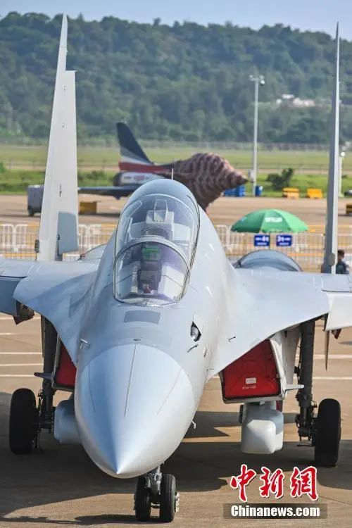 9月28日,广东省珠海市,歼-16D飞机亮相第十三届中国航展,进行静态展示。 中新社记者 陈骥旻 摄