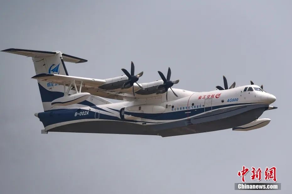 9月28日,广东省珠海市,大型灭火/水上救援水陆两栖飞机“鲲龙”AG600飞行在珠海国际航展中心上空。中新社记者 陈骥旻 摄