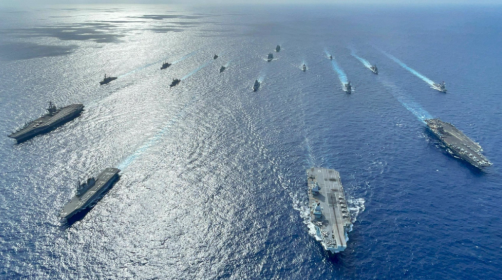 据报道,美国、英国、日本、荷兰、加拿大和新西兰等6个国家的17艘军舰,在南海及其周边海域举行演习,包括美国的“卡尔·文森”号和“里根”号航母、英国的“伊丽莎白女王”号航母等舰船参加了演习,演习持续到10月10日。那么,这次演习跟以往美国在南海及其周边海域举行的演习相比,有什么不同?美国纠集多国军队在南海及其周边海域搞联合演习有什么企图? 就相关话题,总台央广记者专访了军事观察员梁永春 。