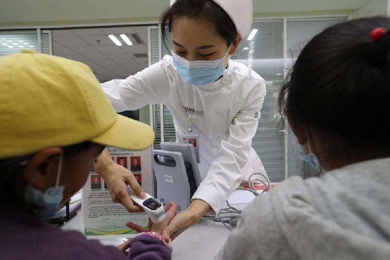 为患儿进行出院前复诊。陈峥 摄