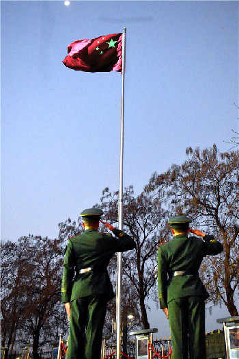 最后一次穿军装向国旗敬礼: