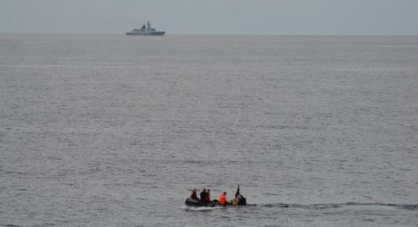 远处可以看见正在监视的我军054A型护卫舰 图源:法国海军
