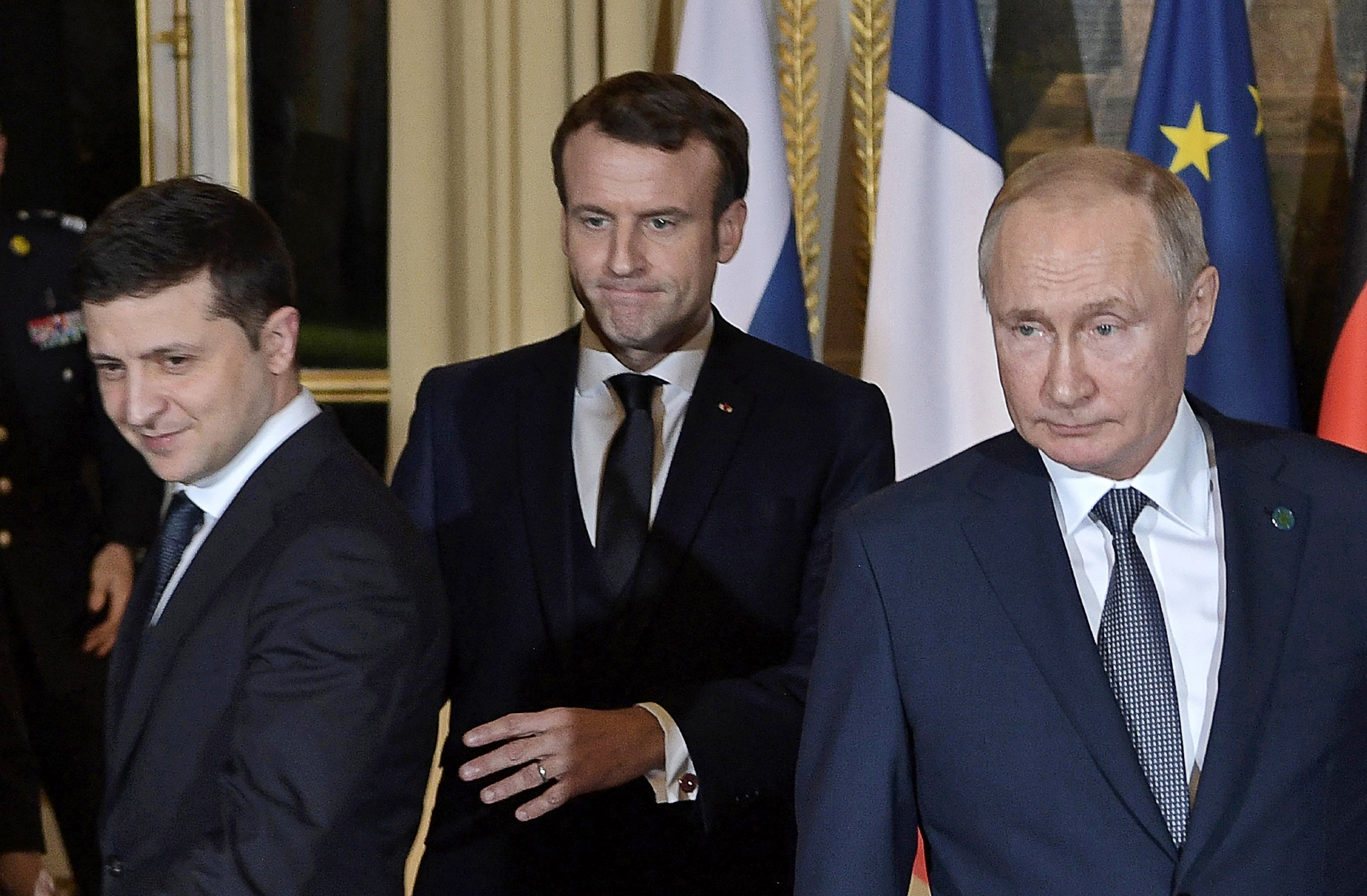 当地时间2019年12月9日,法国巴黎,“诺曼底模式”四国峰会举行,法国总统马克龙、德国总理默克尔、俄罗斯总统普京和乌克兰总统泽连斯基举行会谈。图/IC photo