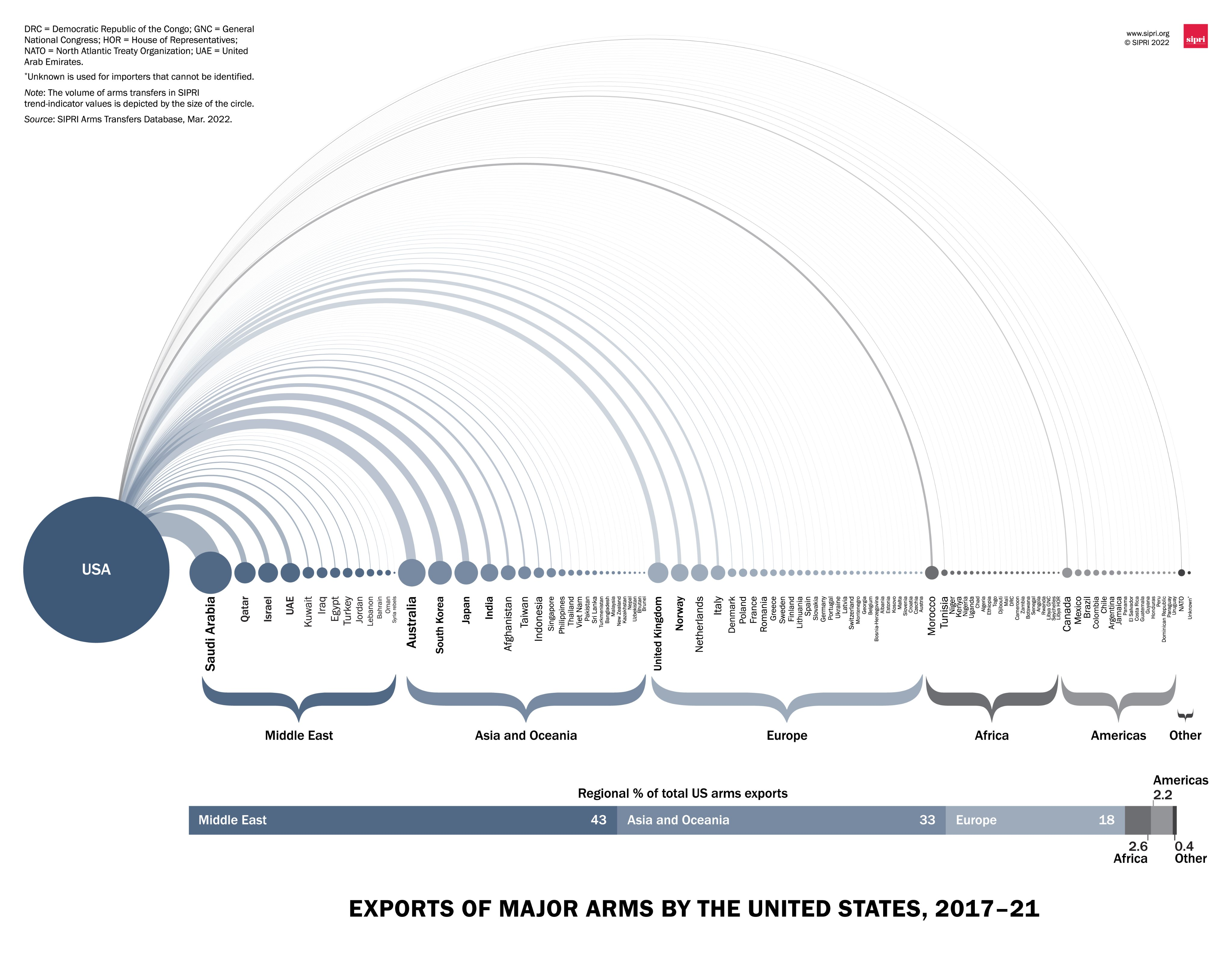 △2017年-2021年美国主要武器出口情况 图片来源:SIPRI