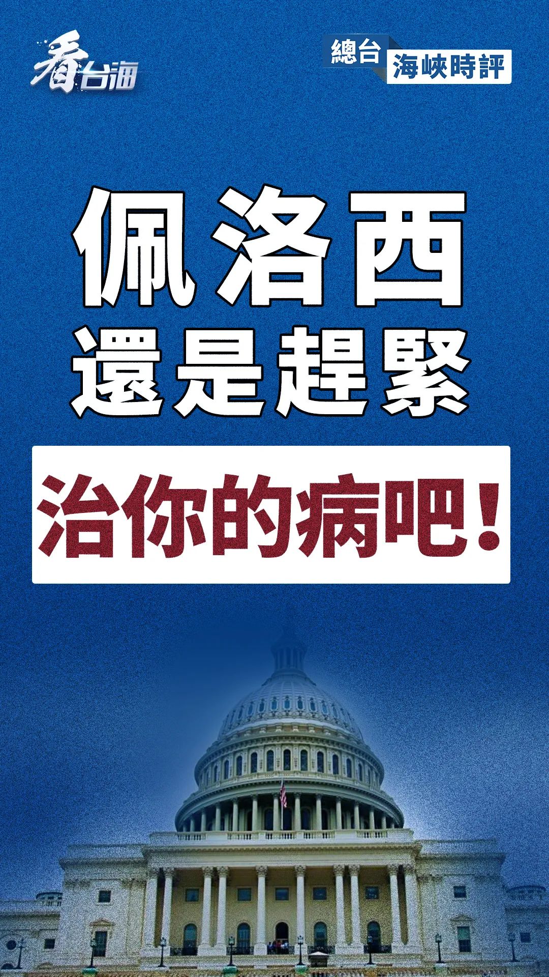 佩洛西既然感染了新冠肺炎,还是以身体为重,抓紧治病,不要再费尽心思来台海做冲击中美关系政治基础、破坏台海和平稳定的丑事。倘若执迷不悟、不听规劝,必将自食恶果、无药可救。