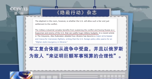 对此,美媒《隐蔽行动》杂志近日发表评论文章《美国领导人声称在乎乌克兰人,但为了结束战争,他们会不会加速做出必要的妥协呢》。文章指出,美国政府本应该支持基辅和莫斯科之间达成保证乌克兰中立的协议,且现在已到了达成这项和平协议的时机。然而,文章质疑美国是否会允许一个公正的解决方案出现,因为军工复合体能从战争中受益,并且以俄罗斯为敌人“来证明巨额军事预算的合理性”。