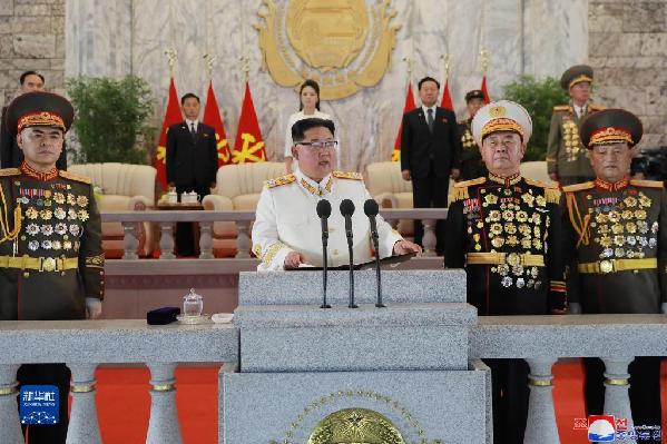 报道说,朝鲜劳动党总书记金正恩在阅兵式上发表讲话说,朝鲜决定继续以最快的速度发展本国的核武器,并且做好了随时使用核威慑的准备。他在发言中还表示,要为人民的幸福生活和国家的光荣与胜利而不懈努力。