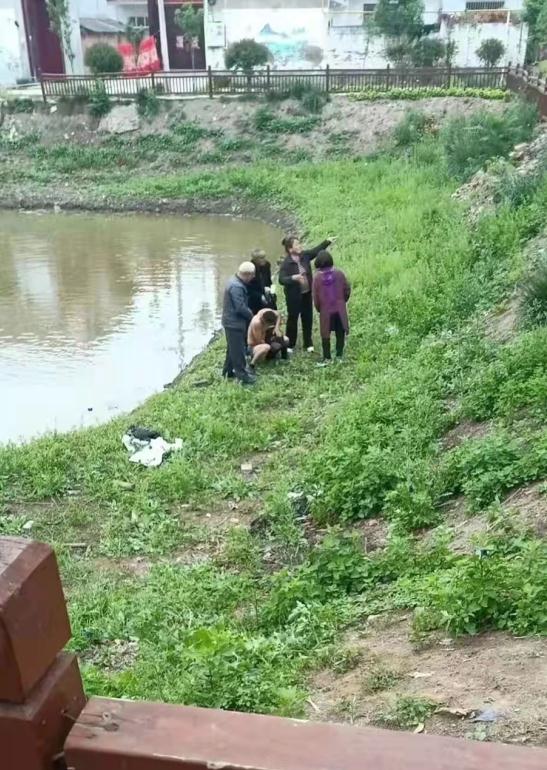 只见在距他约40米处的水塘边,一群老人焦急地向水池中张望并喊着“救命”,原来是一名两岁儿童玩耍时不慎落水。