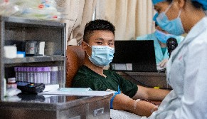 在第19个世界献血者日来临之际,武警广西总队崇左支队组织官兵开展无偿献血活动。