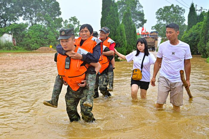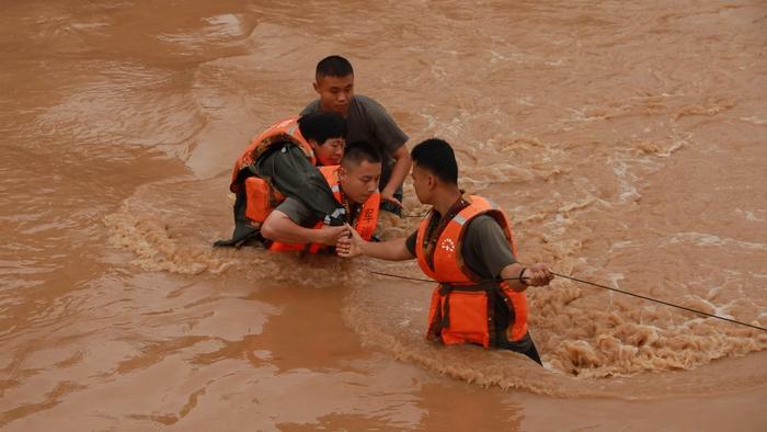 近日,粤北地区遭遇持续强降雨,多地发生严重内涝,韶关市区主要街道交通受阻严重。南部战区陆军第74集团军某旅官兵迅速奔赴20余个受灾严重的点位,解救受困群众。