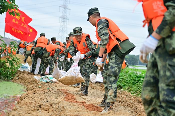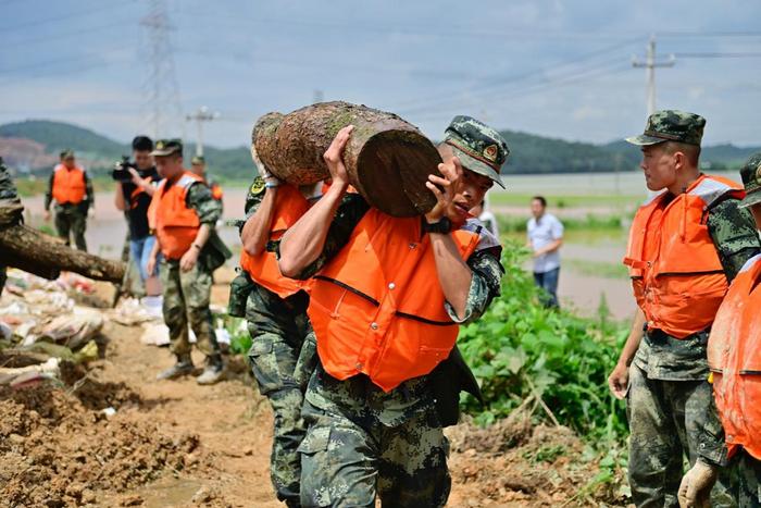 “北江堤坝有决堤危险,请求你部紧急支援抗洪抢险!”6月21日11时40分,应驻地政府请求,经报上级批准,南部战区空军某部数十名官兵紧急出动参加驻地抗洪抢险。