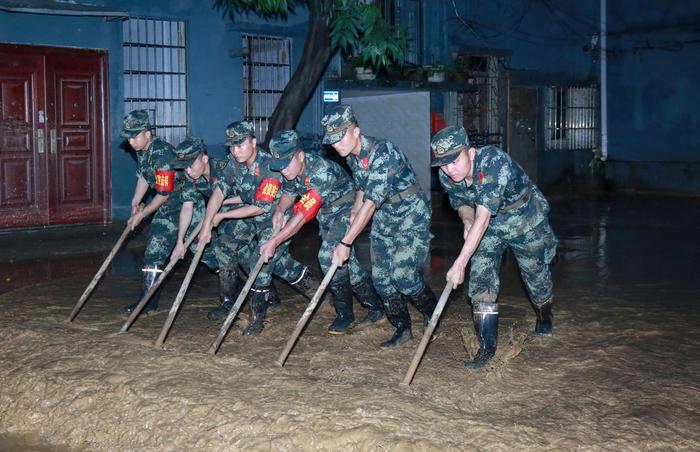 武警官兵到达现场后分成多个突击小组,与驻地群众一起迅速展开清淤行动。经过近4个小时的奋战,武警官兵圆满完成抗洪清淤任务,居民生产生活基本恢复正常。(何科、侯旭达、赵启鹏)