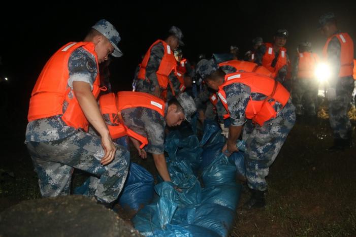 南部战区空军某部紧急驰援护堤坝