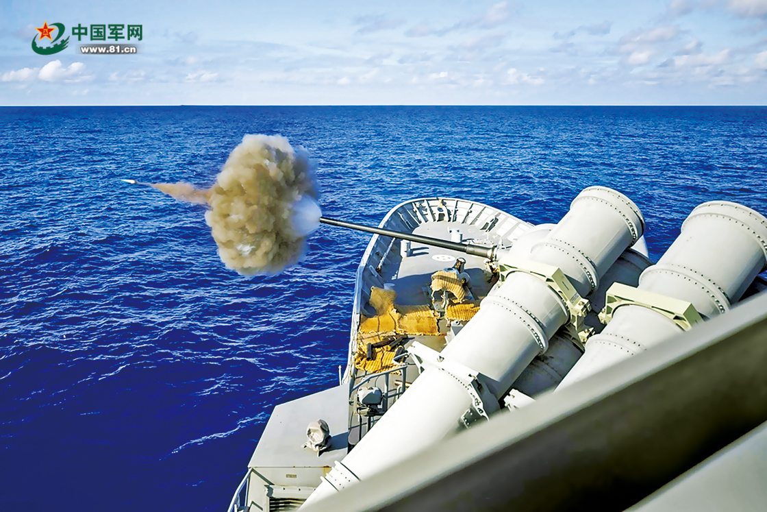 美此前主导的“环太平洋”演习期间,参演舰艇进行实弹射击演练。资料图片