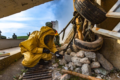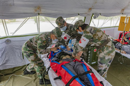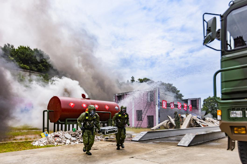 演练模拟爆炸事故大型救援现场,通过军地协作,分批次调集某部工兵防化分队力量和军地医疗救援力量,通过现场协同指挥、危化品中毒洗消及救援、“危重伤员”直升机转运等多个环节的应急演练,全面提升应急能力。