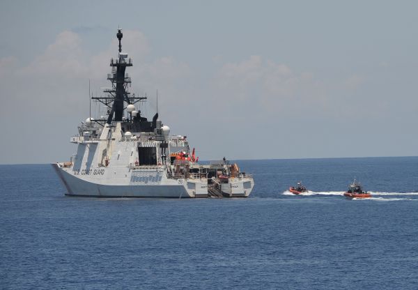 美国海警船在南海与菲律宾海警船举行联合演习(法新社资料图片)