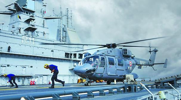 该舰测试直升机起降。图片来源于印度亚洲通讯社。