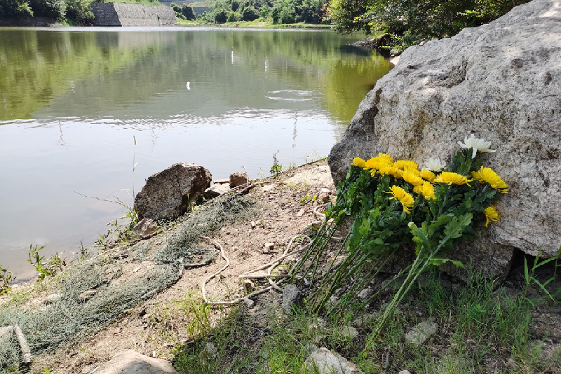 7月13日,事发地附近村民自发到李林雨救人下水处悼念。谢定安 摄
