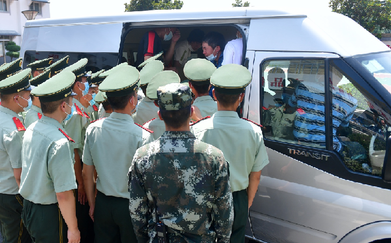 7月14日,李林雨亲属与李林雨生前所在中队官兵依依惜别。谢定安 摄