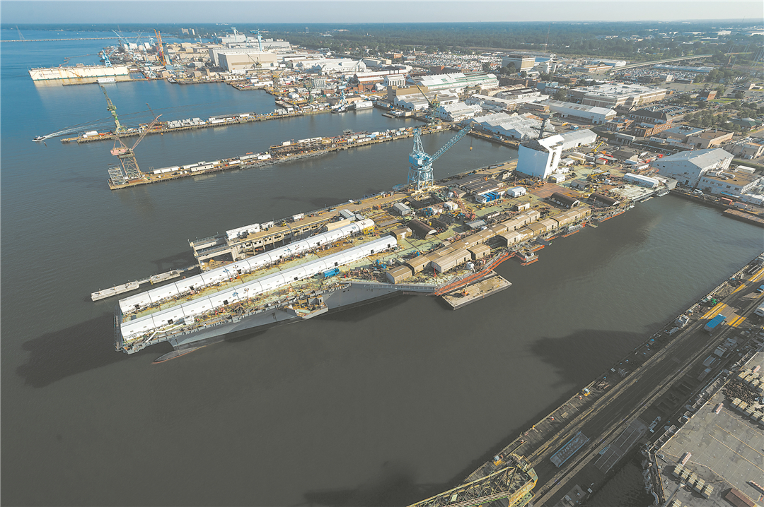 舾装过程工作繁多要求高,下水后的美国福特级肯尼迪号航母舾装中一度发生火灾事故。资料图片
