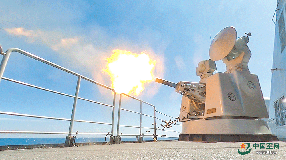 随着雷达锁定靶机,舰炮操作人员快速进行射击准备。靶机进入射程后,舰炮果断开火。伴随巨大的声响,靶机被成功击中。