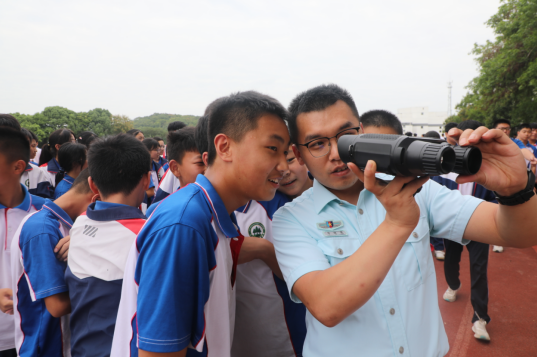 少年智则国智,少年强则国强。16日下午,盱眙县人武部所属人员来到淮安市第一山中学,采取课内课外相结合的形式提升学生崇军尚武爱国防的兴趣。操场上,教员们利用手中的望远镜、夜视仪、防毒面具等装备,与中学生一起体验防毒面具的佩戴、绷带包扎等军事课目训练。