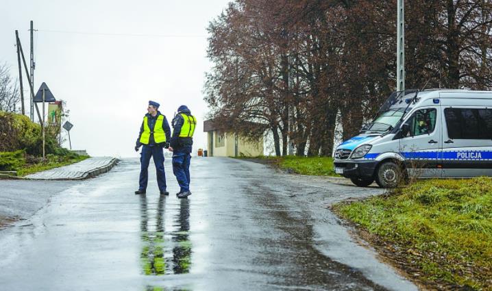 11月16日,波兰东部的普热沃多夫村,在因导弹袭击造成两名平民死亡的地区,波兰警方封锁了一条道路。 (法新社)