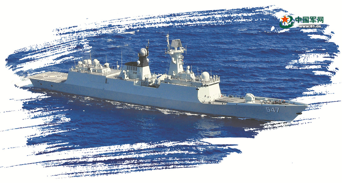 高耸的桅杆、飘扬的红旗、昂首的主炮……临沂舰像一位身着银色战袍的钢铁勇士,向着赛场发起冲锋。