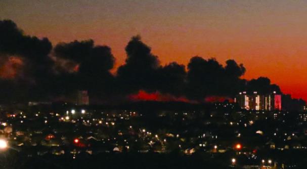 6日,库尔斯克机场地区一储油设施遭空袭后起火。(视觉中国)