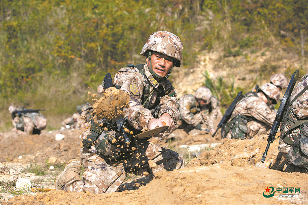 开展构筑单兵掩体训练考核。