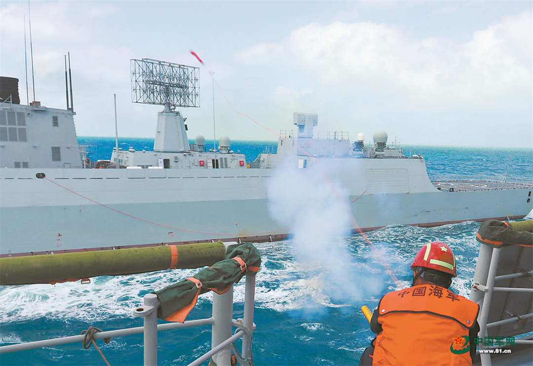 战舰滔海,铁翼飞旋。近日,海军某作战支援舰支队组成舰艇编队,赴南海某海域开展综合作战支援演练,检验部队协同保障能力。